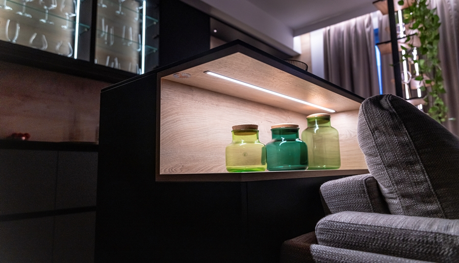 Decydując się na oświetlenie, powinno się wybierać wygodne i praktyczne rozwiązania, które dodatkowo ozdobią pomieszczenie. Warto zdecydować się na rozwiązania LED, które można dostosować do własnych potrzeb. – Jeżeli zależy nam na obsłudze światła w zależności od nastroju, to dobrym rozwiązaniem jest system Loox LED. Możliwość zmiany natężenia światła oraz temperatury barwowej to zaleta, która wpływa na nasz komfort – mówi Wojciech Olchówka. W stylu urban jungle popularne są kolory ziemi, dlatego warto uzupełnić spokojne odcienie o dodatkowe podświetlenie. Oświetlenie typu RGB pozwala na uzyskaniu oświetlenia o praktycznie dowolnej barwie, które w różnych kombinacjach manipulują nastrojem we wnętrzu. - Ciepła czerwień nada pomieszczeniu wyjątkową, ciepłą atmosferę, która będzie kojarzyć się z relaksem.  Zieleń podkreśli roślinne elementy, a zimny niebieski, który ochłodzi temperaturę, wyróżni to co najważniejsze – podpowiada Wojciech Olchówka. Światło RGB można zastosować nie tylko w przestrzeniach między półkami, ale także podświetlić sufit w każdym pomieszczeniu. Szczególnie modne jest ozdabianie wielokolorowymi taśmami LED sypialni, wprowadzając do wnętrza wyjątkowy klimat.