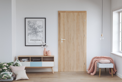 Wprowadzając do wnętrz ciepły odcień drewna, łagodnie otulimy przestrzeń. Lekkie meble na cienkich nóżkach będą idealnie współgrały z drzwiami Porta DECOR w wybarwieniu skandynawskiego buku. Miękkie poduszki i pledy czy pastelowe fronty szafek podkreślą urokliwy klimat aranżacji. Biała klamka będzie natomiast pasującym do całości detalem.