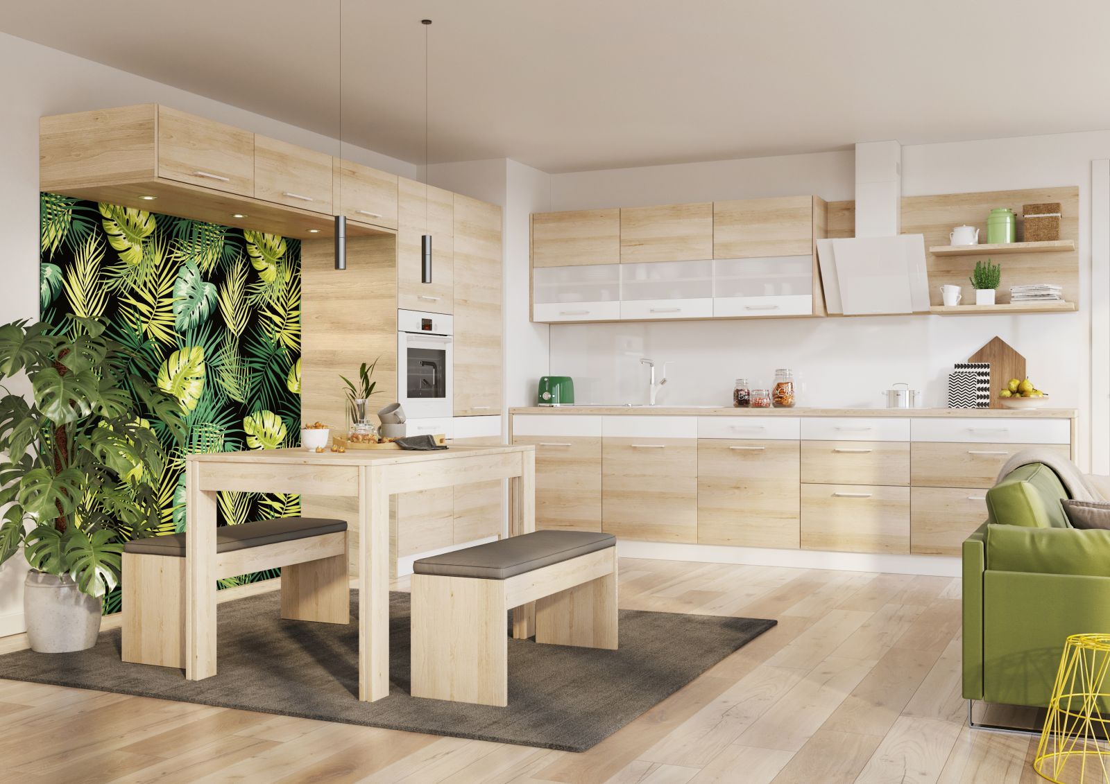 Otwarta kuchnia to jeden z najważniejszych trendów, który na nowo zdefiniował standardy w projektowaniu zabudowy meblowej. Kuchnia w otwartej przestrzeni musi zachować funkcjonalność, a równocześnie dopasować się do części salonowej. Nakłada to duże wymagania względem wyglądu mebli kuchennych, które współtworzą reprezentacyjną część domu. Zaaranżowanie otwartej przestrzeni dziennej wymaga dużej staranności i przemyślanych rozwiązań, dzięki którym poszczególne strefy będą spełniały swoje zadania, a jednocześnie łączyły się ze sobą w spójną stylistycznie całość. Nowoczesne wnętrza nie lubią ograniczających je ścian, dlatego ich rolę przejęły odpowiednio zaprojektowane i w przemyślany sposób ustawione meble.