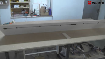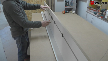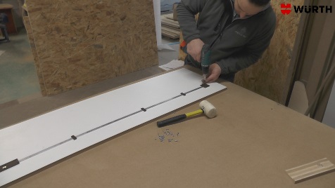 Idealnym rozwiązaniem tego problemu jest zastosowanie stabilizatora skrzydeł drzwi Würth Polska (art. nr 0684 700 054), który prostuje i usztywnia front szafy. Jego maksymalna długość to 2320mm. Oznacza to, że stabilizatora możemy użyć nawet do drzwi o wysokości 2500mm. Elementy ściągające są gwintowane na całej swojej długości, istnieje więc możliwość przycięcia ich i dopasowania do frontów o mniejszej wysokości. Elementy stabilizatora oraz schemat montażowy zaprezentowane są na rysunku 2 a , b, c: