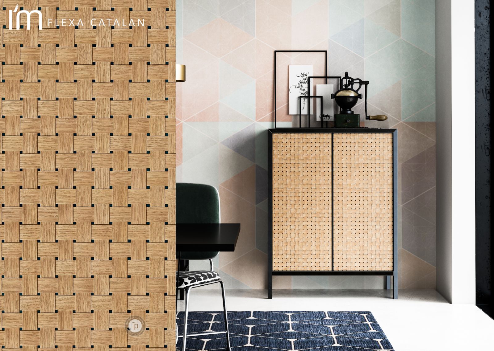 Flexa Catalan to dekor zwyczajowo zwany “plecionką”. Dębowy fornir spleciony I ułożony na tle dowolnego koloru. Przyciąga oko realistycznym wyglądem i idealnie pasuje do mebli projektowanych w stylu mid-century lub wnętrz projektowanych ze swobodą stylistyczną.