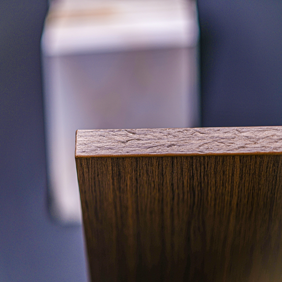 W rodzinie RAUKANTEX nowe warianty nieustannie wspierają ten cel. RAUKANTEX pigmento stanowi ważny krok naprzód: pigmenty w promieniu frezowania sprawiają, że dekor ciągnie się przez całe obrzeże. Widoczne przejścia zostają zminimalizowane, typowy efekt ramki znika, a całość wygląda bardziej autentycznie i ekskluzywnie. Efekt ten szczególnie dobrze prezentuje się w połączeniu z powierzchniami imitującymi drewno, ceramikę lub kamień. W dekorach drewnianych struktura słojów w promieniu frezowania została dodatkowo dopracowana, co daje jeszcze bardziej naturalny wygląd.