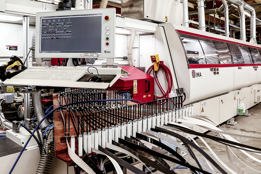 Nieustannie testujemy z naszymi partnerami nowe materiały i technologie obróbki, aby uzyskiwać optymalne wyniki. Para wodna jest z pewnością jednym z największych wyzwań w przestrzeni kuchennej. Należy wziąć pod uwagę kilka czynników, które w ostatecznym rozrachunku decydują o uzyskaniu dobrego wyniku. Oprócz technologii klejenia obejmują one jakość płyt, materiał obrzeży oraz stosowane narzędzia i ich ostrość.
