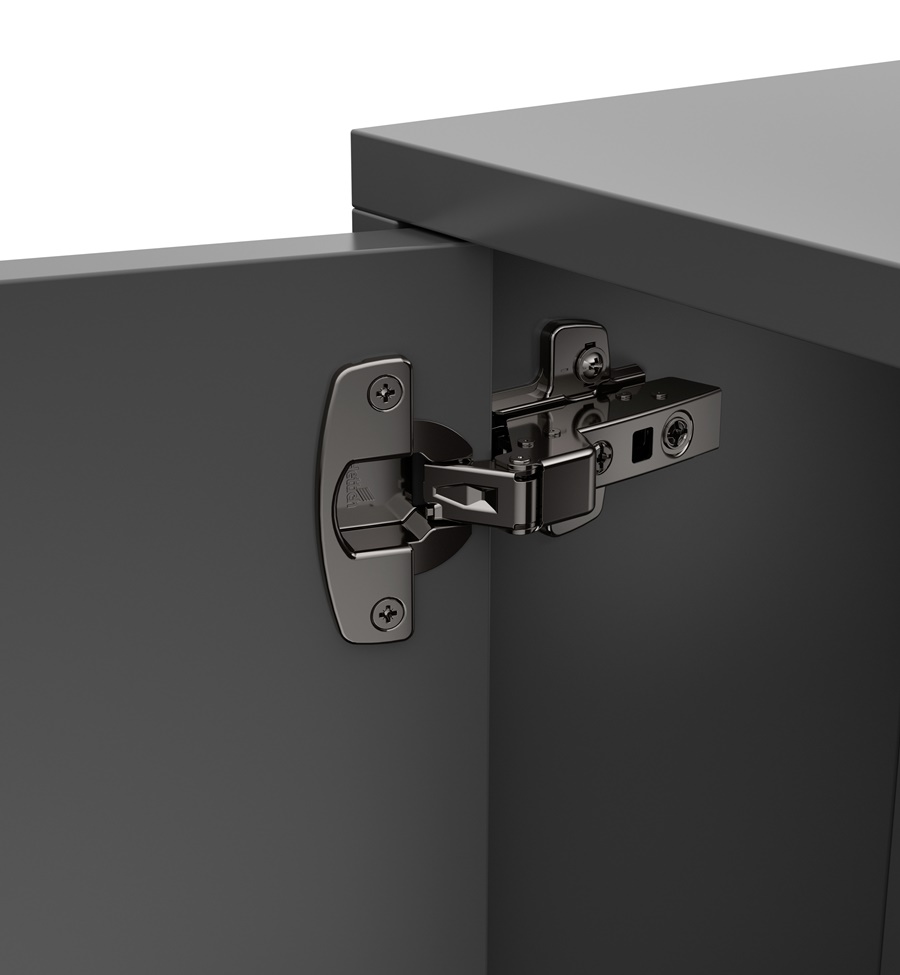 Nowością w ofercie Hettich są zawiasy Sensys 20°, określane również jako zawiasy równoległe do drzwi wpuszczanych. Z powodzeniem zastosujesz je do kuchennej szafki narożnej prostej, a także zawiasy równoległe do drzwi nakładanych. Oba typy są dostępne w ofercie Hettich również w barwie obsydianu.
