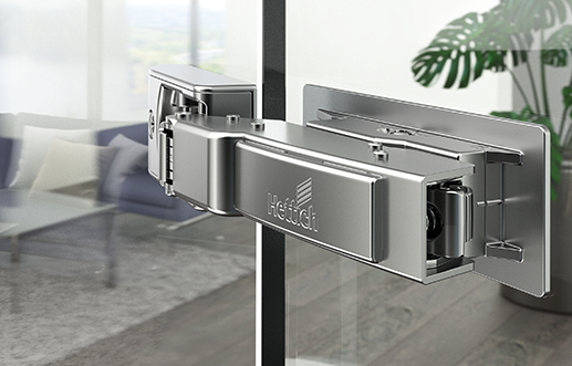 Hettich oferuje również zaawansowane zawiasy przeznaczone do konstrukcji szklanych. Dzięki ich właściwościom, zarówno front jak i bok może być wykonany ze szkła. Zawiasy podkreślają minimalistyczny styl szklanych elementów, a zintegrowane ciche domykanie to gwarancja cichego, bezpiecznego i miękkiego zamknięcia delikatnych szklanych drzwiczek.