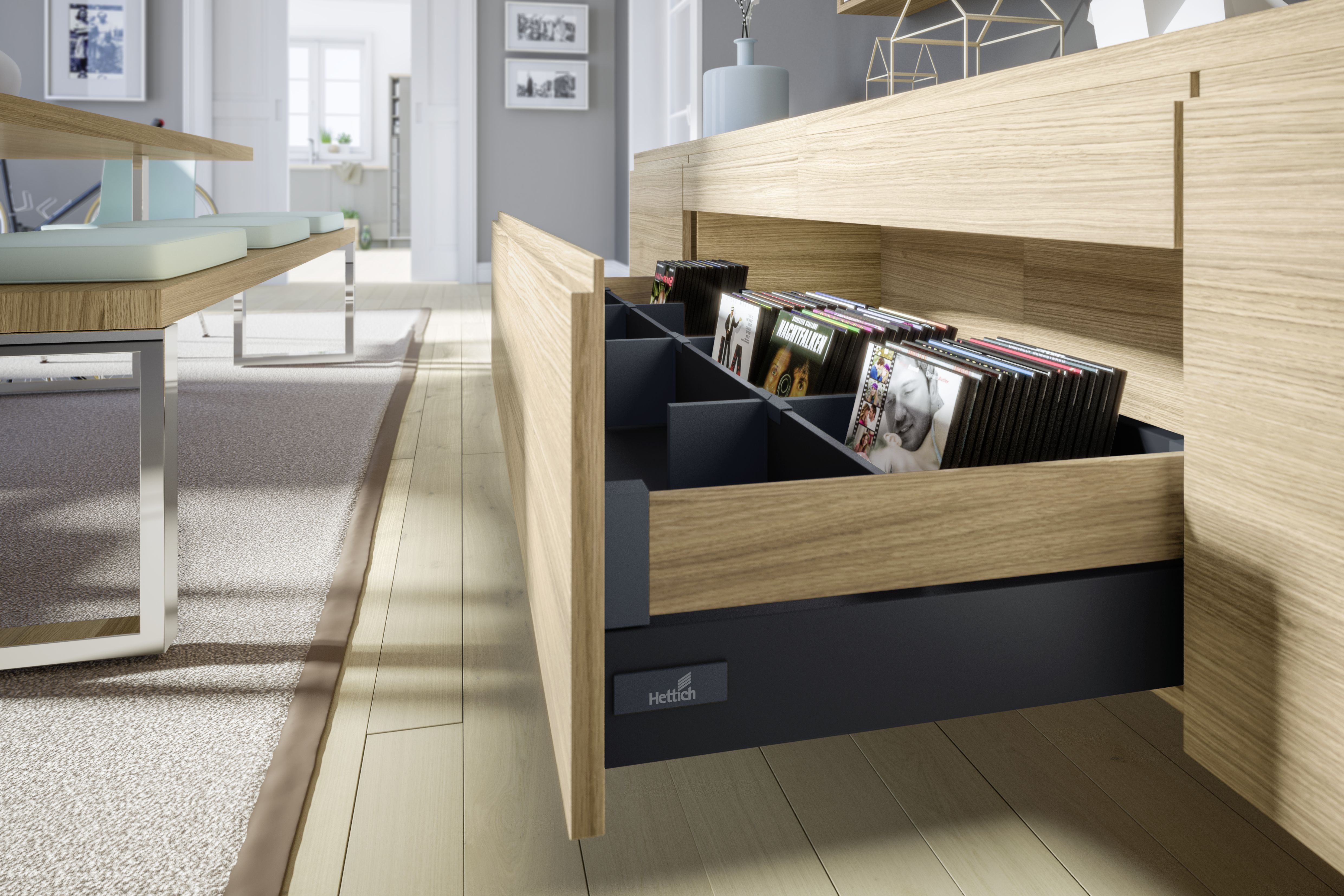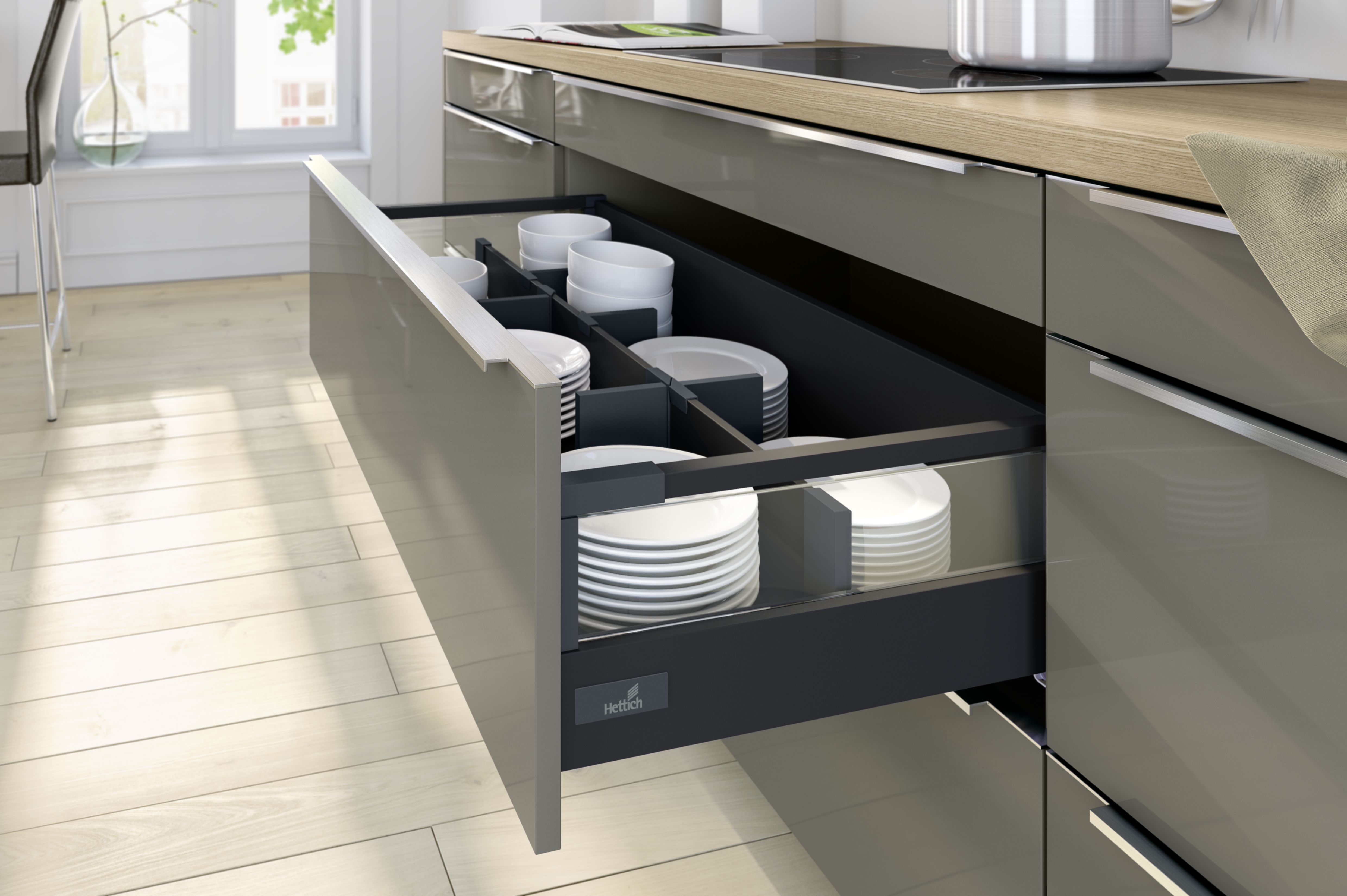 Idealne szuflady? To te, które dużo mieszczą, mają dobrze zorganizowane wnętrze, a korzystanie z nich jest łatwe.  Z myślą o zadowolonych użytkownikach, marka Hettich oferuje szereg innowacyjnych rozwiązań, które ułatwiają codzienne życie.