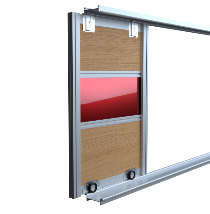 Konstrukcja górnego ślizgacza także zapewnia szybkie i łatwe zamontowanie drzwi na torze. Łożyskowane okucia jezdne dolne zapewniają cichą pracę systemu, są także bezawaryjne.