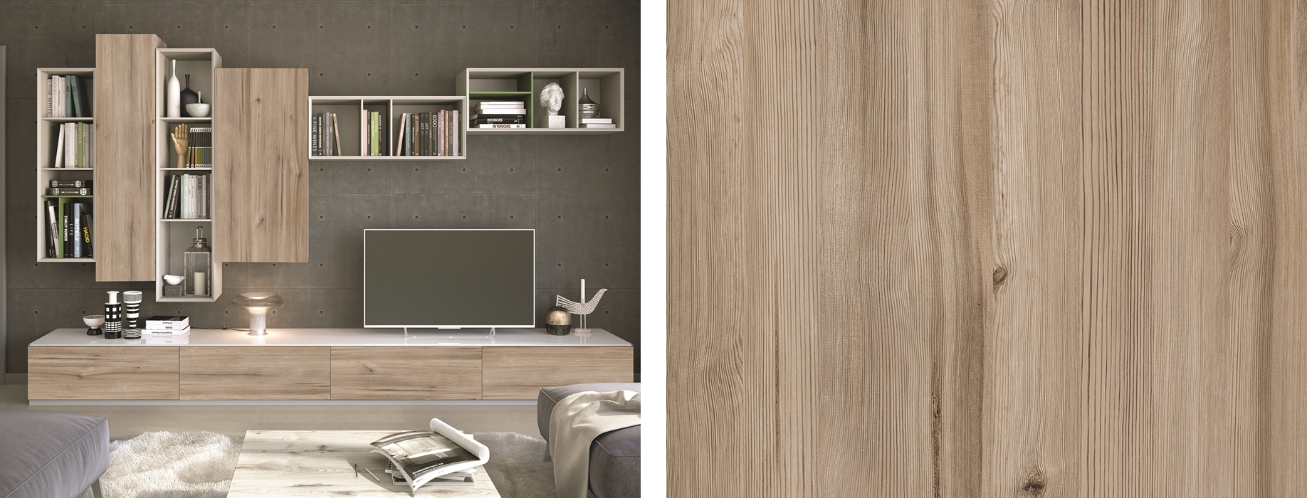 Dąb Catania to dekor, który ożywia wnętrze. Jego rysunek charakteryzują ponacinane, duże fladry. Delikatne pory drewna i wąskie przyrosty roczne nadają tej strukturze zaś bardzo harmonijny charakter. Kolorystyka i rysunek tego dekoru sprawiają, że możemy zastosować go zarówno we wnętrzach nowoczesnych jak i tych nawiązujących do stylistyki retro.