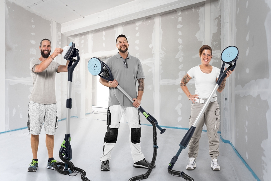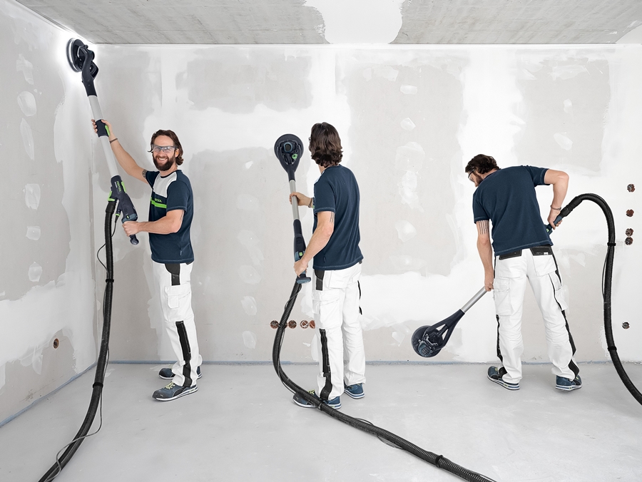 Lekka, intuicyjna, bezobsługowa. Przygotowanie pomieszczeń do zabudowy suchej nigdy nie było łatwiejsze, niż przy użyciu profesjonalnej szlifierki przegubowej PLANEX od Festool. Dzięki optymalnemu przeniesieniu mocy, szlifowanie sufitów i ścian odbywa się bardzo szybko. Zapewnia to silnik o dużej mocy bez elastycznego wału, ale z napędem bezpośrednim.