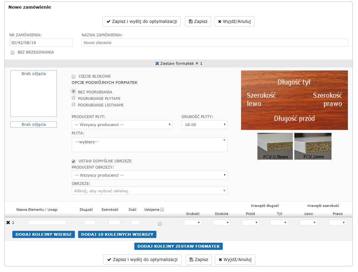 Za pomocą tego systemu tworzymy nowe zlecenie i wykonamy optymalizację z planem rozkroju poprzez komputer lub bezpośrednio przez tablet.