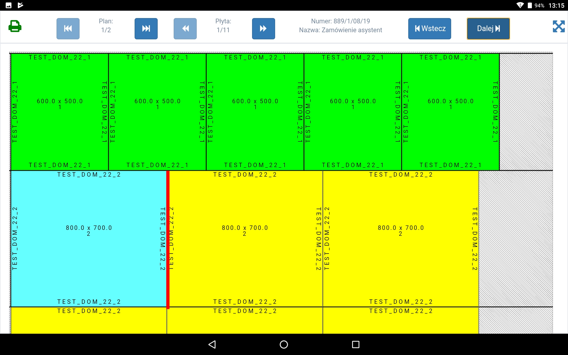 Dodatkowo mamy możliwość wydrukowania planu rozkroju lub przesłania go jednym kliknięciem na tablet do realizacji. Asystent wyświetli kolejne kroki cięcia, ustawień i obrotów formatek. Dla każdej formatki oraz odpadu produkcyjnego zostanie wydrukowana etykieta.