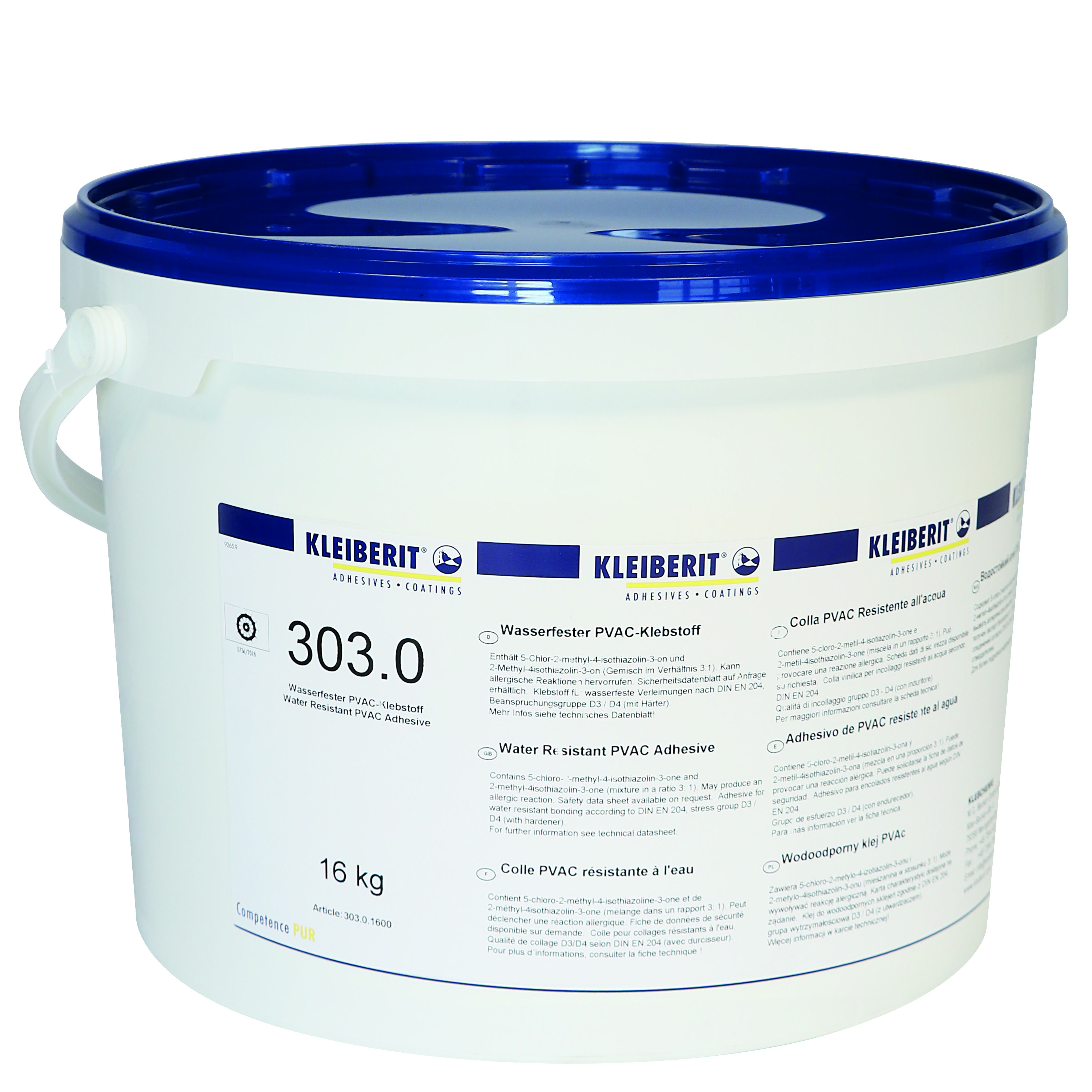 Kleiberit 303 to już wielokrotnie sprawdzony wodoodporny klej PVAc do sklejeń zgodnie z DIN/EN 204, grupy wytrzymałościowej D3/D4 z dodatkiem 5 % turboutwardzacza. Idealny klej do sklejania okien, drzwi