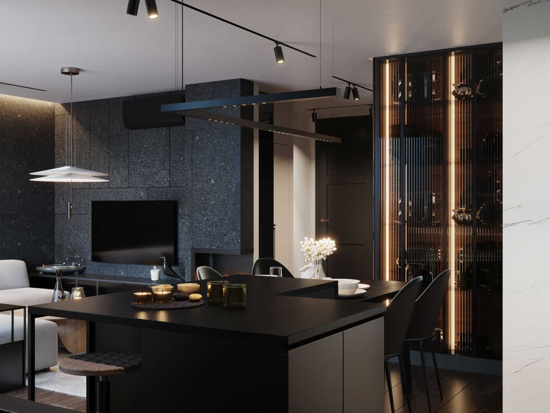 Realizacja tego 70-metrowego apartamentu była wyzwaniem, m.in. poprzez nietypowy styl, który wybrali właściciele. Sterylna biel, która towarzyszy inwestorom na co dzień w pracy, została celowo zdetronizowana, ustępując miejsca wyrazistej, ciemnej kolorystyce. Życzeniem właścicieli, którzy zwrócili się o pomoc do MIKOŁAJSKAstudio, były eleganckie, zachęcające do wypoczynku wnętrza, łączące współczesny luksus z wielkomiejską wygodą. Użycie kilku dominujących materiałów oraz niezwykła dbałość o detale, pozwoliły stworzyć projekt skrojony na miarę potrzeb jego użytkowników. Od razu po przekroczeniu progu czuć przedsmak tego, co czeka nas w dalszej części – konsekwentne zastosowanie materiałów wykończeniowych, kolorystyki i stylu.